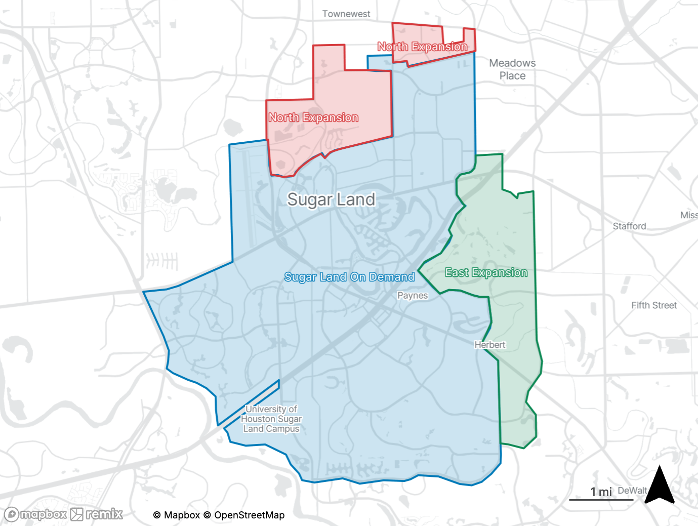 On Monday, October 13th, Sugar Land On-Demand expanded a second time to the North and East.